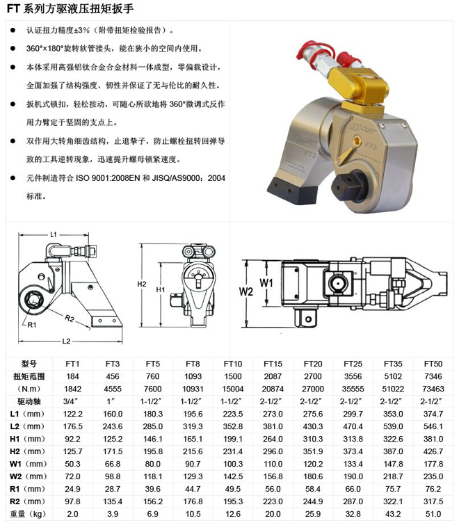 驅(qū)動式/方驅(qū)液壓扭矩扳手